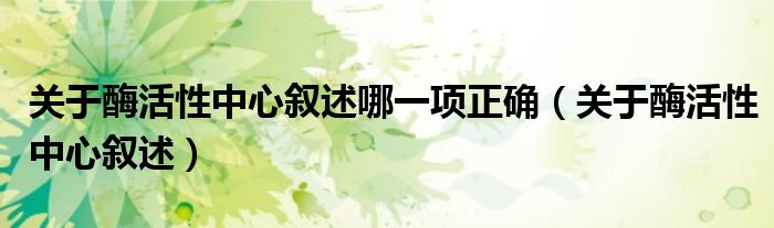大家好,linda来为大家解答以上的问题。关于酶活性中心叙述哪一项正确,关于酶活性中心叙述很多人还不知道,现在让我们一起来看看吧!