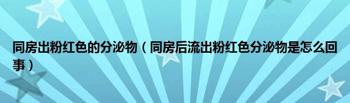 大家好,linda来为大家解答以上的问题。同房出粉红色的分泌物,同房后流出粉红色分泌物是怎么回事很多人还不知道,现在让我们一起来看看吧!