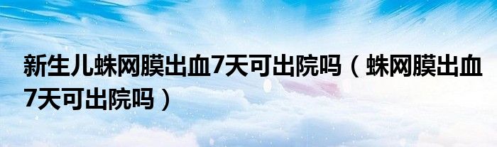 大家好,linda来为大家解答以上的问题。新生儿蛛网膜出血7天可出院吗,蛛网膜出血7天可出院吗很多人还不知道,现在让我们一起来看看吧!