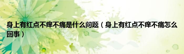 大家好,linda来为大家解答以上的问题。身上有红点不痒不痛是什么问题,身上有红点不痒不痛怎么回事很多人还不知道,现在让我们一起来看看吧!