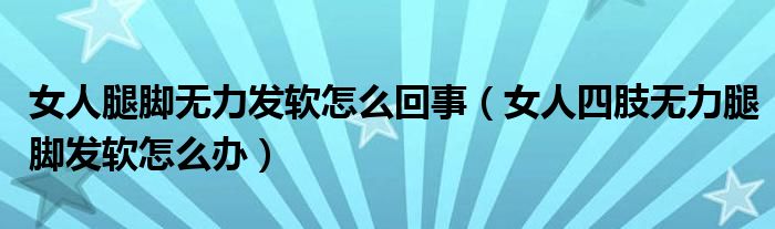 大家好,linda来为大家解答以上的问题。女人腿脚无力发软怎么回事,女人四肢无力腿脚发软怎么办很多人还不知道,现在让我们一起来看看吧!
