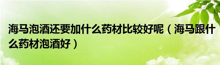 大家好,linda来为大家解答以上的问题。海马泡酒还要加什么药材比较好呢,海马跟什么药材泡酒好很多人还不知道,现在让我们一起来看看吧!