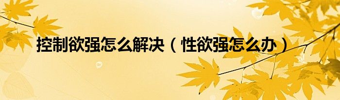 大家好,linda来为大家解答以上的问题。控制欲强怎么解决,性欲强怎么办很多人还不知道,现在让我们一起来看看吧!