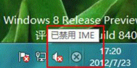 IME 是指 Input Method Editors 输入法编辑器,当你在一段时间不用输入法的时候,系统就会自动禁用。 此时,系统在任务栏右下角会出现一个小叉,提示“已禁用 IME。当你需要用输入法的时候,Windows 8 会随时唤醒 IME。