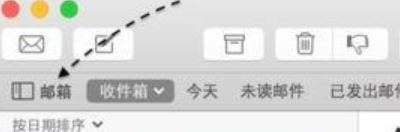 1、在 Mac 上打开邮件应用以后,请先点击窗口左上角的“邮箱”选项,如图所示