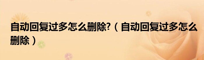 自动回复过多怎么删除?(自动回复过多怎么删除)