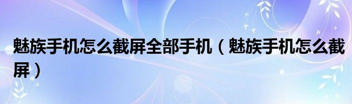 魅族手机怎么截屏全部手机(魅族手机怎么截屏)