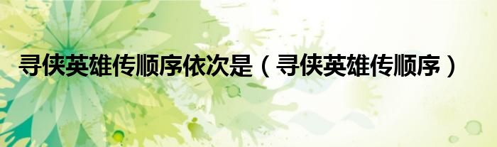寻侠英雄传顺序依次是(寻侠英雄传顺序)
