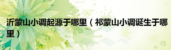 沂蒙山小调起源于哪里(祁蒙山小调诞生于哪里)