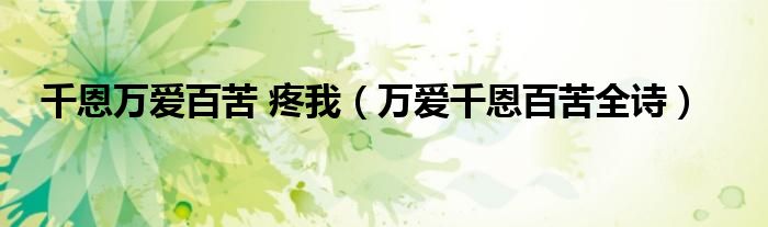 大家好,小晋来为大家解答以下问题,关于千恩万爱百苦 疼我,万爱千恩百苦全诗很多人还不知道,今天让我们一起来看看吧!