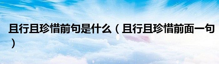 大家好,小晋来为大家解答以下问题,关于且行且珍惜前句是什么,且行且珍惜前面一句很多人还不知道,今天让我们一起来看看吧!