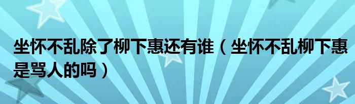 大家好,小晋来为大家解答以下问题,关于坐怀不乱除了柳下惠还有谁,坐怀不乱柳下惠是骂人的吗很多人还不知道,今天让我们一起来看看吧!