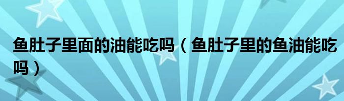 鱼肚子里面的油能吃吗(鱼肚子里的鱼油能吃吗)