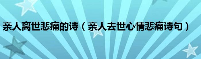 大家好,小晋来为大家解答以下问题,关于亲人离世悲痛的诗,亲人去世心情悲痛诗句很多人还不知道,今天让我们一起来看看吧!