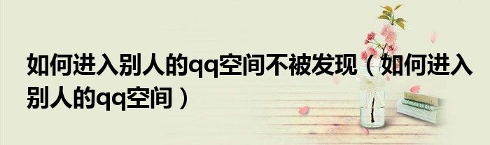 大家好,小晋来为大家解答以下问题,关于如何进入别人的qq空间不被发现,如何进入别人的qq空间很多人还不知道,今天让我们一起来看看吧!