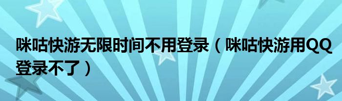 大家好,跳跳为你解答以上问题。咪咕快游无限时间不用登录,咪咕快游用QQ登录不了这个问题很多人还不知道,现在让我们一起来看看吧!