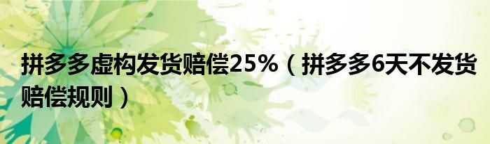 大家好,跳跳为你解答以上问题。拼多多虚构发货赔偿25%,拼多多6天不发货赔偿规则这个问题很多人还不知道,现在让我们一起来看看吧!