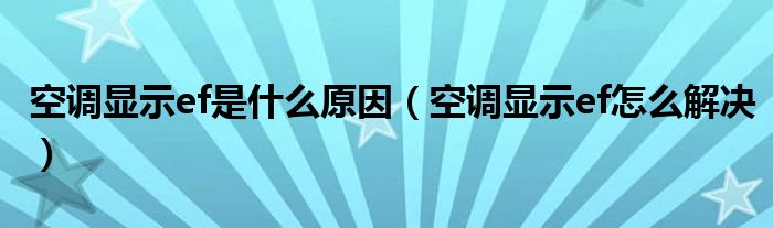 大家好,小叶为你解答以上问题。空调显示ef是什么原因,空调显示ef怎么解决这个问题很多人还不知道,现在让我们一起来看看吧!