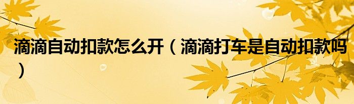 大家好,跳跳为你解答以上问题。滴滴自动扣款怎么开,滴滴打车是自动扣款吗这个问题很多人还不知道,现在让我们一起来看看吧!