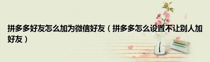 大家好,跳跳为你解答以上问题。拼多多好友怎么加为微信好友,拼多多怎么设置不让别人加好友这个问题很多人还不知道,现在让我们一起来看看吧!