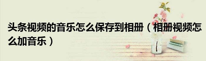 大家好,跳跳为你解答以上问题。头条视频的音乐怎么保存到相册,相册视频怎么加音乐这个问题很多人还不知道,现在让我们一起来看看吧!