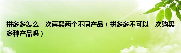 大家好,跳跳为你解答以上问题。拼多多怎么一次再买两个不同产品,拼多多不可以一次购买多种产品吗这个问题很多人还不知道,现在让我们一起来看看吧!