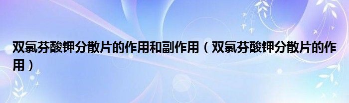 大家好,linda来为大家解答以上的问题。双氯芬酸钾分散片的作用和副作用,双氯芬酸钾分散片的作用很多人还不知道,现在让我们一起来看看吧!
