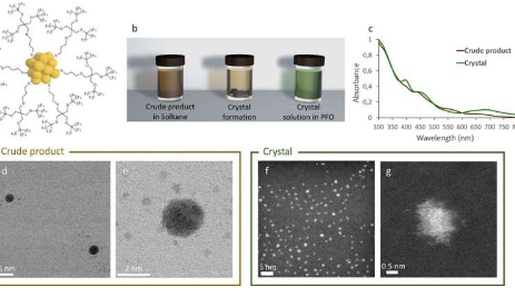 “由于存在完全氟化的外壳,含有近 500 个氟原子,金纳米团簇通过粘合剂的氟原子之间的众多相互作用而稳定,从而促进结晶,”Giancarlo Terraneo 教授说。