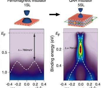 “虽然我们无法使用角分辨光发射光谱(ARPES)直接观察 QAH 效应,但我们可以使用这种技术来探测 MNBI 2 TE 4表面带隙开口的大小以及它如何随温度变化,” FLEET 研究员 Trang 博士说。