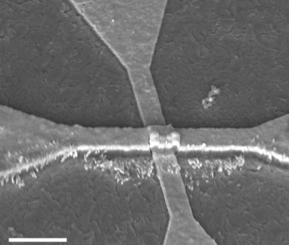 这个开关就是所谓的莫特过渡。它发生在纳米级的二氧化钒层中。在该层之上是由钛和金制成的纳米线加热器。当电流流过纳米线时,二氧化钒层会慢慢升温,导致从绝缘到导电的缓慢、受控的转换。