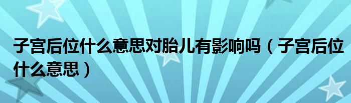 大家好,linda来为大家解答以上的问题。子宫后位什么意思对胎儿有影响吗,子宫后位什么意思很多人还不知道,现在让我们一起来看看吧!