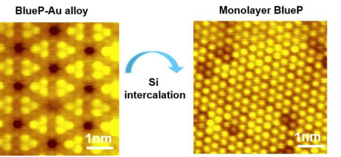 一个研究小组从化学和物理的部部由教授陈威为首NUS已经通过实验证实的原子级薄的层纯蓝色的磷可以从获得的硅的蓝色磷-金插层(BlueP-Au)的合金. 通过将块状黑磷前体沉积到加热的金 (111) 表面上来制备单层 BlueP-Au 合金。随后从加热的硅棒蒸发硅分子。这些硅原子插入到 BlueP-Au 合金下方并形成金硅化物缓冲层,打破了磷和金原子之间的分子键,从而导致在表面形成纯单层蓝磷。