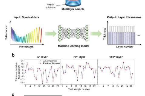 在Light: Advanced Manufacturing上发表的一篇新论文中,由韩国先进科学技术研究院 (KAIST) 和三星电子有限公司的工程师组成的团队,由韩国 KAIST 的 Jungwon Kim 教授领导,开发了一种非一种结合光谱测量和机器学习的破坏性厚度表征方法. 通过利用半导体多层叠堆和电介质多层反射镜之间的结构相似性,采用了光谱光学测量,包括椭偏测量和反射测量。然后使用机器学习来提取光谱测量数据与多层厚度之间的相关性。对于超过 200 层的氧化物和氮化物多层堆叠,整个堆叠上每层的厚度可以确定,平均约 1.6 Å 均方根误差。