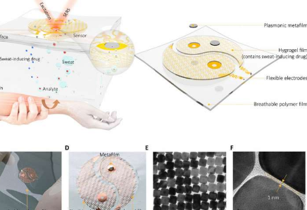 通过这种方式,Yingli Wang 及其同事展示了作为下一代可穿戴设备的可穿戴等离子体电子集成传感器。与现有的可穿戴电化学传感器相比,该传感器表现出更广泛的目标特异性和更高的稳定性。该集成设备弥补了个性化诊断和精准医疗方面的现有差距,可实时跟踪体内的重要分子。该团队提出了在闭环反馈给药系统中监测生理线索和药物浓度的应用,并期望可穿戴传感器激发一系列多学科应用。