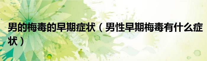 大家好,linda来为大家解答以上的问题。男的梅毒的早期症状,男性早期梅毒有什么症状很多人还不知道,现在让我们一起来看看吧!