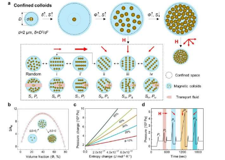 有趣的是,似乎“自由不是自由的”。首先,胶体悬浮液被多孔基质捕获。但是,受限的胶体在有限的空间内也是自由的,因为它们的集体动力学可以通过磁场极大地控制。受限的胶体的集体构型在统计学上和热力学上由胶体熵表征。同时,由压力值同时指示受限的胶体之间的相互作用以及胶体悬浮液和几何约束之间的相互作用。特别地,压力变化与熵变化成线性关系。两者都受到几何约束,胶体堆积率以及磁场强度和方向的显着影响。而且,