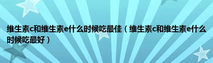 大家好,linda来为大家解答以上的问题。维生素c和维生素e什么时候吃最佳,维生素c和维生素e什么时候吃最好很多人还不知道,现在让我们一起来看看吧!