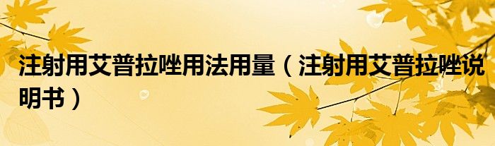 注射用艾普拉唑用法用量(注射用艾普拉唑说明书)