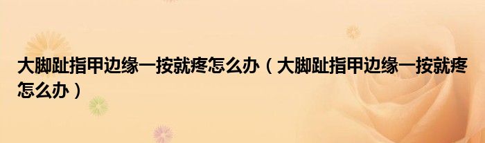 大家好,linda来为大家解答以上的问题。大脚趾指甲边缘一按就疼怎么办,大脚趾指甲边缘一按就疼怎么办很多人还不知道,现在让我们一起来看看吧!