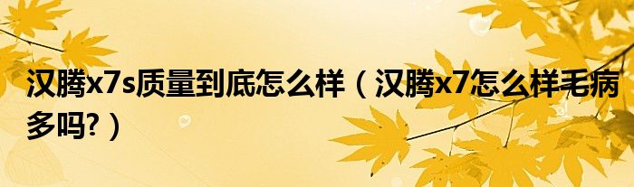 大家好,小美来为大家解答以上问题。汉腾x7s质量到底怎么样,汉腾x7怎么样毛病多吗?很多人还不知道,现在让我们一起来看看吧!