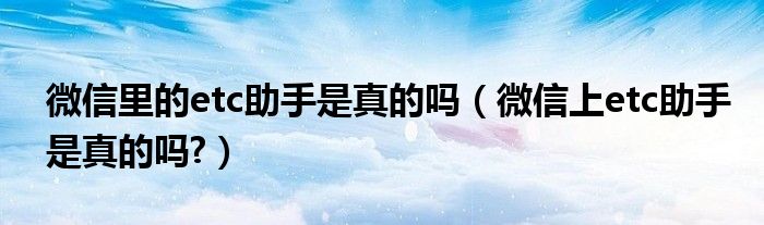 大家好,小美来为大家解答以上问题。微信里的etc助手是真的吗,微信上etc助手是真的吗?很多人还不知道,现在让我们一起来看看吧!