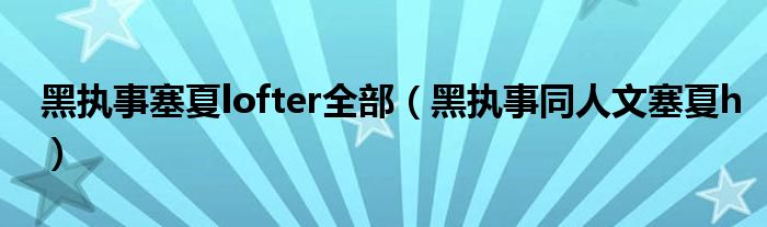 关于黑执事塞夏lofter全部,黑执事同人文塞夏h这个很多人还不知道,今天菲菲来为大家解答以上的问题,现在让我们一起来看看吧!