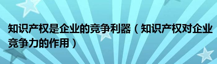 关于知识产权是企业的竞争利器,知识产权对企业竞争力的作用这个很多人还不知道,今天菲菲来为大家解答以上的问题,现在让我们一起来看看吧!