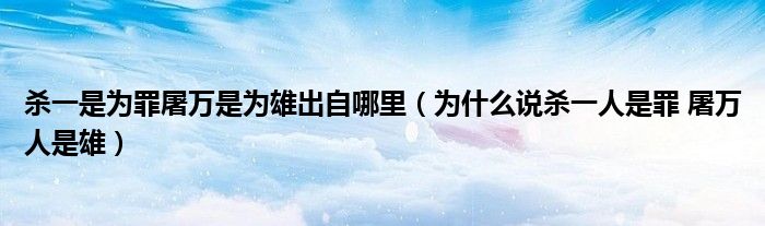 杀一是为罪屠万是为雄出自哪里(为什么说杀一人是罪 屠万人是雄)