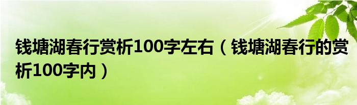 关于钱塘湖春行赏析100字左右,钱塘湖春行的赏析100字内这个很多人还不知道,今天菲菲来为大家解答以上的问题,现在让我们一起来看看吧!