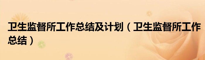 卫生监督所工作总结及计划(卫生监督所工作总结)