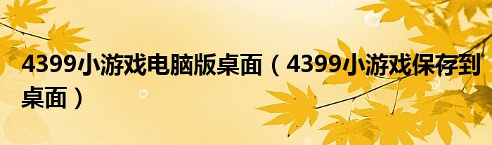 4399小游戏电脑版桌面(4399小游戏保存到桌面)