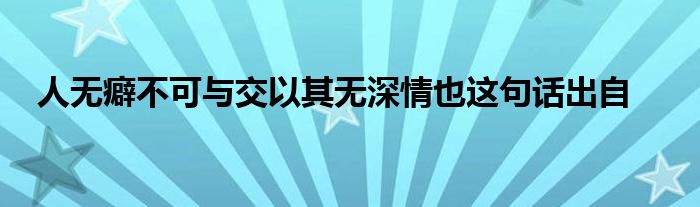 关于人无癖不可与交以其无深情也这句话出自这个很多人还不知道,今天菲菲来为大家解答以上的问题,现在让我们一起来看看吧!