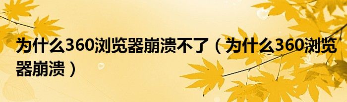 为什么360浏览器崩溃不了(为什么360浏览器崩溃)
