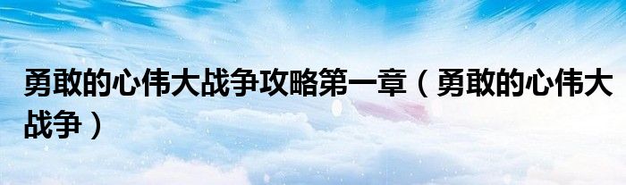 勇敢的心伟大战争攻略第一章(勇敢的心伟大战争)